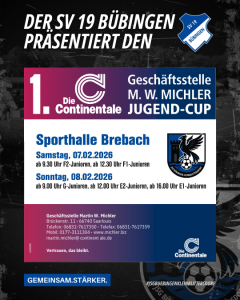 Einladung zum 1. Continentale Geschäftsstelle Martin W. Michler Jugendcups Der SV 19 Bübingen lädt dich und alle Fußballfreunde, Familien und